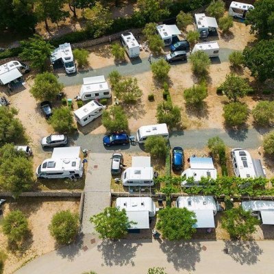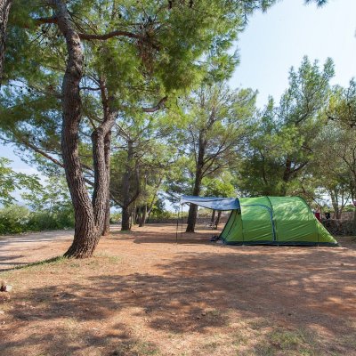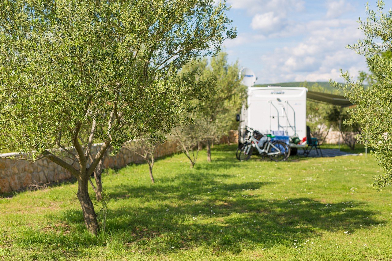 Parcele površine 140 m², djelomično sjenovite. Parcela uključuje auto + kampprikolicu; kamper. Na parceli se nalazi električni priključak, priključak za vodu i odvod, Wi-Fi.