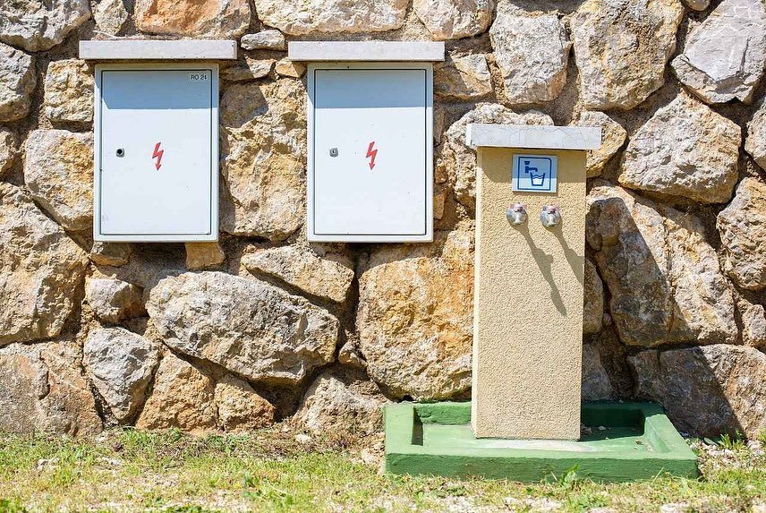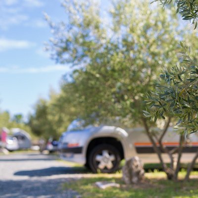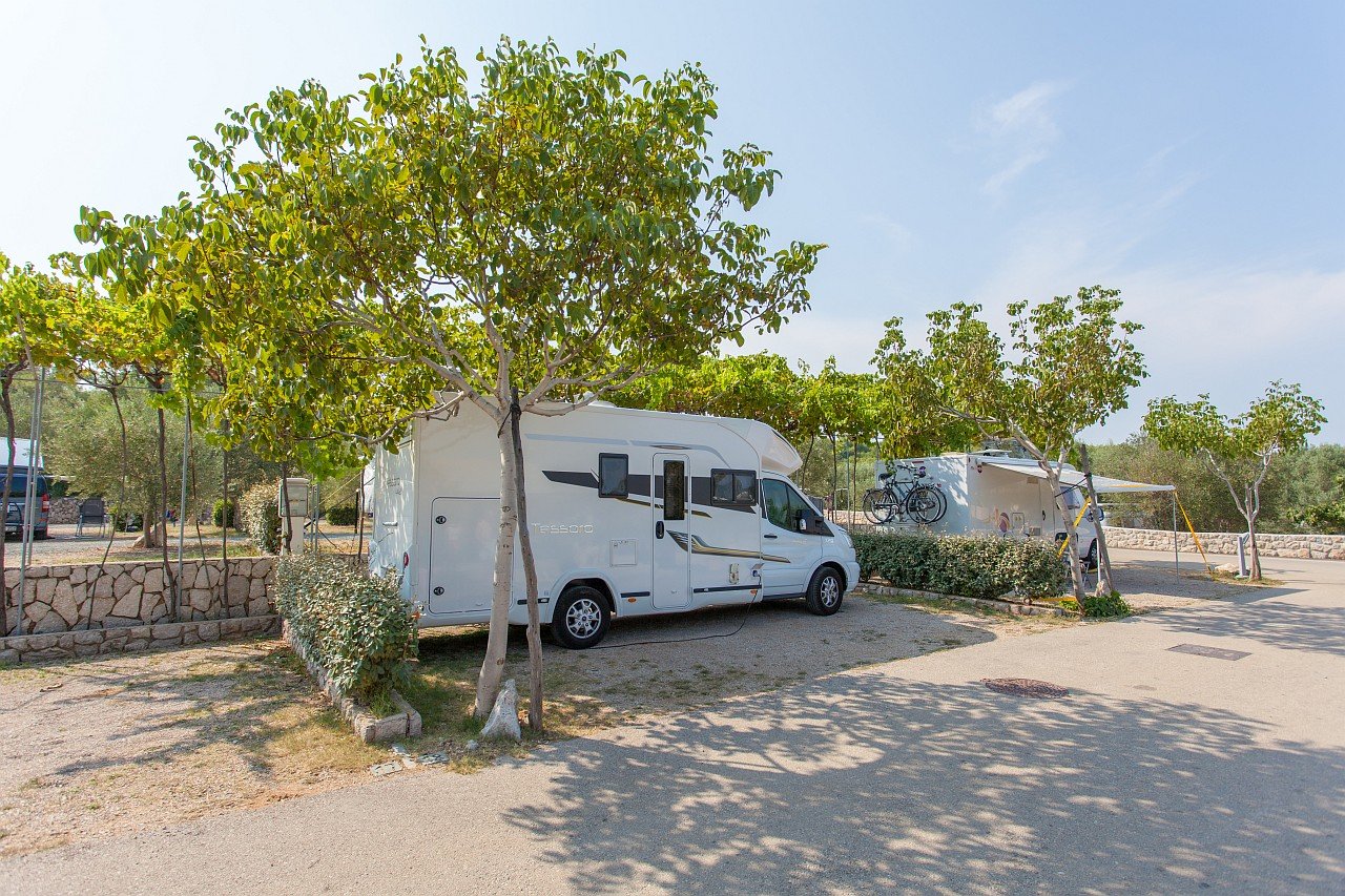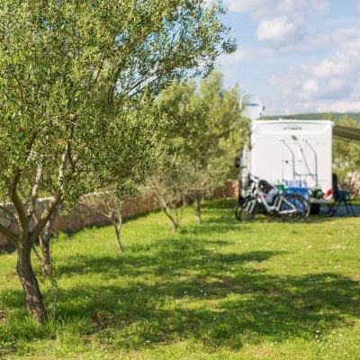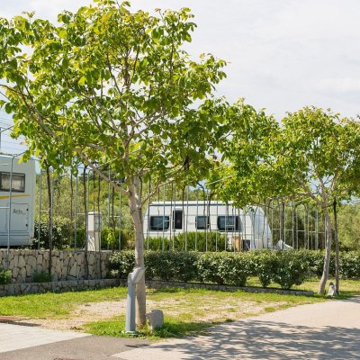 Parcele površine 140 m², djelomično sjenovite. Parcela uključuje auto + kampprikolicu; kamper. Na parceli se nalazi električni priključak, priključak za vodu i odvod, Wi-Fi.